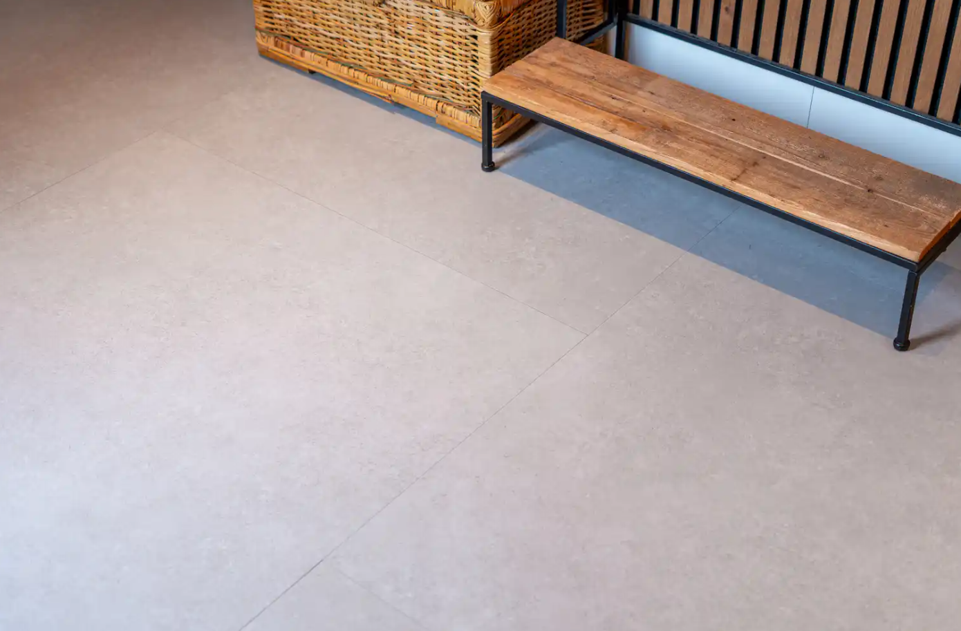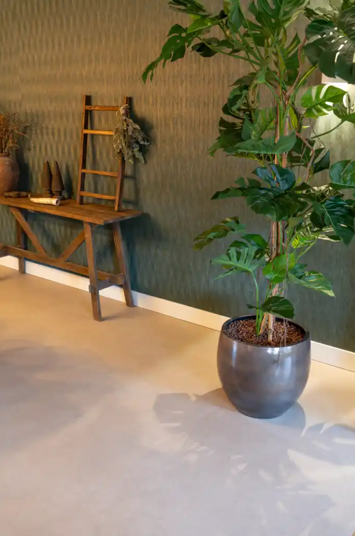 De Touchstone 160 van Belakos combineert de robuuste uitstraling van beton met het comfort van PVC. De subtiele kleurnuances en realistische betonlook geven de ruimte een stoer en modern karakter, zonder kil aan te voelen.
