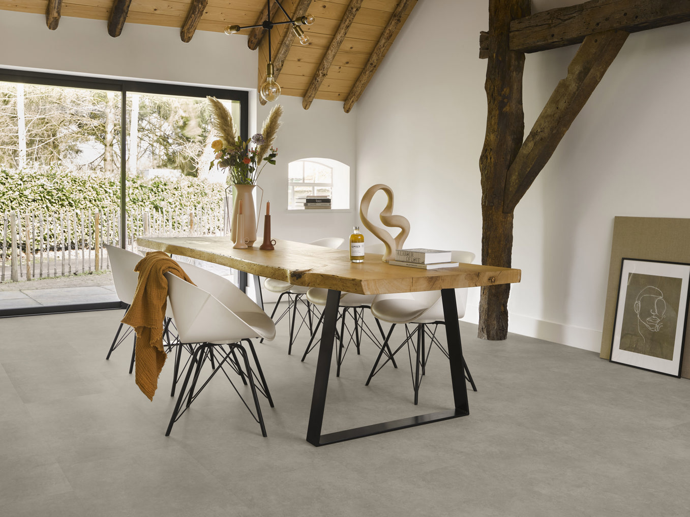 Ultramatte PVC-vloer in betonlook tegel-uitvoering. Natuurgetrouw, naadloos en stijlvol. Zonder v-groef, ideaal voor een strak en modern interieur. Lees meer